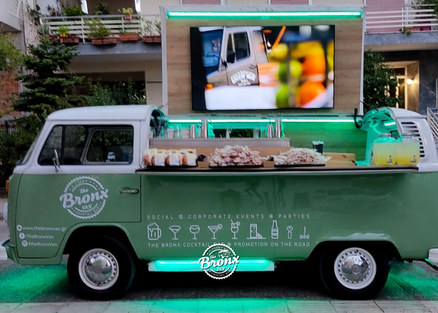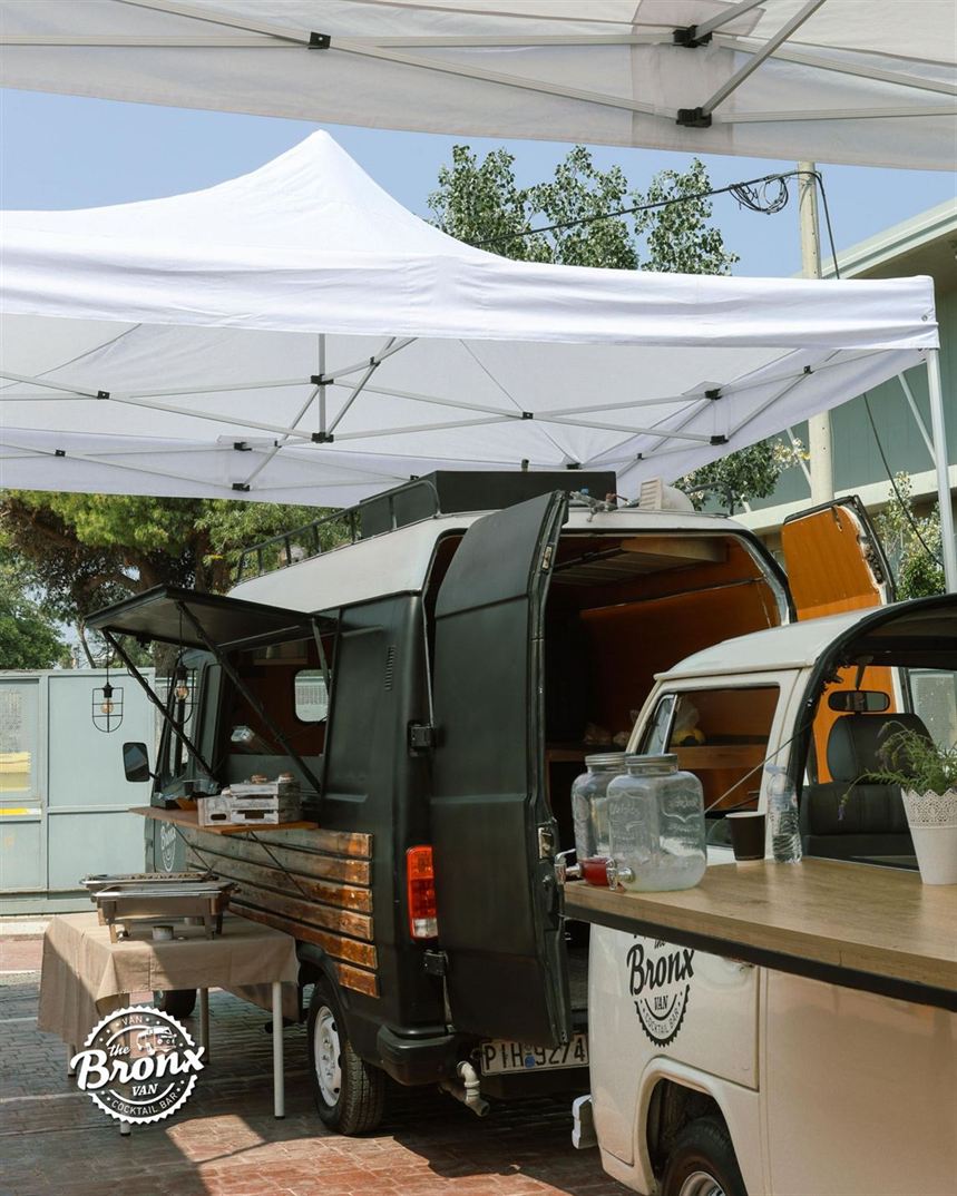 Με ενδιαφέρει!Τα The Bronx Van είναι επαγγελματικά διαμορφωμένα, αυτοκινούμενα Cocktail & Food Bar που υποστηρίζουν πλήρως εταιρικές, κοινωνικές, προωθητικές και ιδιωτικές εκδηλώσεις. Με εμπειρία 22 χρόνων στον χώρο των cocktail και restaurant bars, δημιουργήσαμε τα van μας από την αρχή, μετατρέποντάς τα σε πλήρως εξοπλισμένα και αυτόνομα mobile bar, με ηλεκτρική και υδραυλική αυτονομία, έτοιμα να προσφέρουν μοναδικές υπηρεσίες όπου κι αν βρίσκεστε. Τα The Bronx Van έρχονται στον χώρο σας και δημιουργούν το event που φαντάζεστε, από ένα street party ή ένα private event μέχρι γάμους, happenings και shows. Προσφέρουν δυνατότητα πλήρους ή μερικού branding με τα χρώματα και το λογότυπο της εταιρείας σας, χρησιμοποιώντας wallpapers, αυτοκόλλητα, banners και σημαίες. Εσωτερικά είναι διαμορφωμένα ώστε να φιλοξενούν έως και 5 άτομα, με ατμοσφαιρικό φωτισμό, μουσική και ειδικά διαμορφωμένους χώρους για προβολή προϊόντων και υλικού. Διαθέτουν LED οθόνες (75"), ψυγείο, νεροχύτη, καταψύκτη, πλατό ψησίματος, φριτέζα, τοστιέρα, φούρνο, 4 εστίες αερίου και επαγγελματικό bar station για την παρασκευή cocktails. Λειτουργούν ως ολοκληρωμένα Cocktail & Food Bar στον χώρο σας, αλλά και ως κινητή ή σταθερή μονάδα διαφήμισης και προώθησης προϊόντων και brands. Μπορούν να συμμετέχουν σε συναυλίες, φεστιβάλ και κάθε είδους εκδήλωση, όπως γάμους, εγκαίνια, βαπτίσεις και παιδικά πάρτι. Σχεδιασμένα από επαγγελματίες bartenders και chefs, πλήρως εξοπλισμένα και με τις απαραίτητες νόμιμες άδειες, αποτελούν μια ολοκληρωμένη λύση για εκδηλώσεις, διαφήμιση και προώθηση. Τα The Bronx Van δραστηριοποιούνται σε χώρους όπως ιδιωτικές κατοικίες, εξοχικά, εκκλησίες, beach bars, χώρους μαζικής εστίασης, εταιρείες, δήμους και φεστιβάλ.